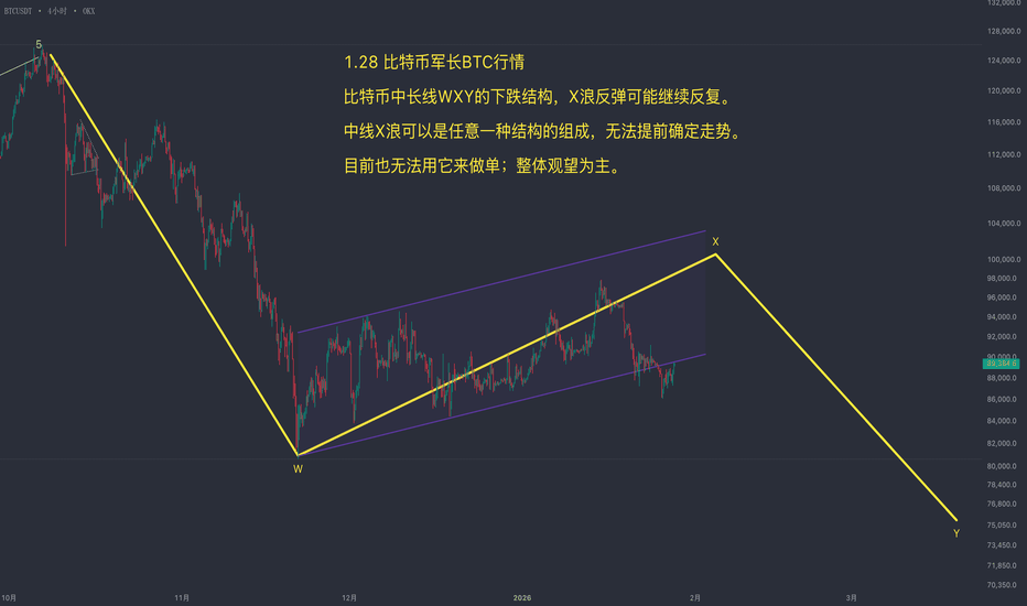 青岚加密课堂:2026年1月27日早间BTC行情分析欢迎来到青岚加密课堂,咱们今天对BTC 四个周期包括消息面进行分析: