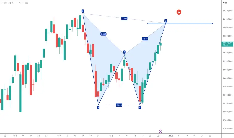 上证综合指数(000001)潜在看跌鲨鱼形态