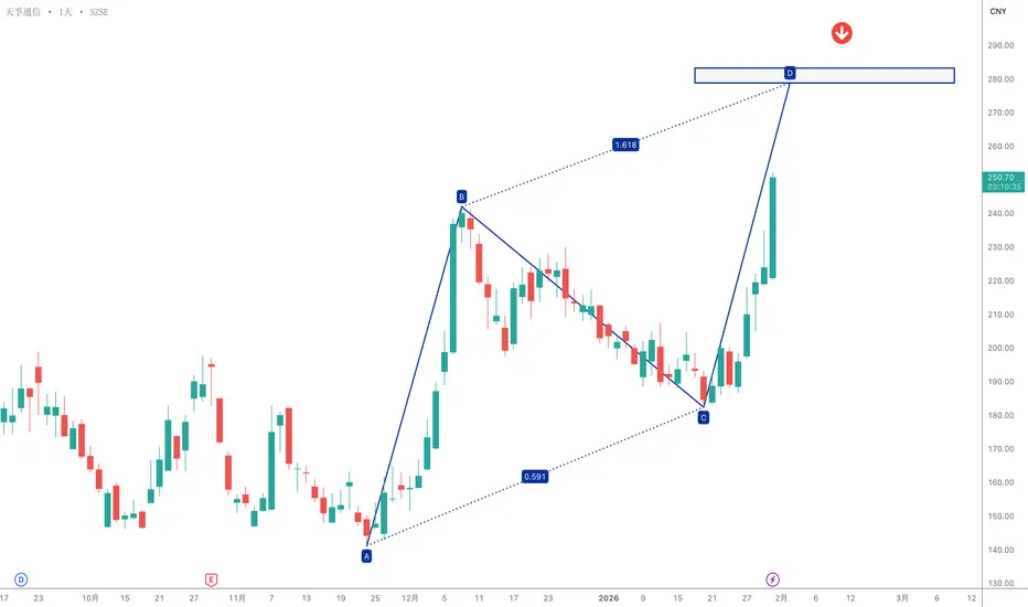 天孚通信(300394)潜在看跌AB=CD形态