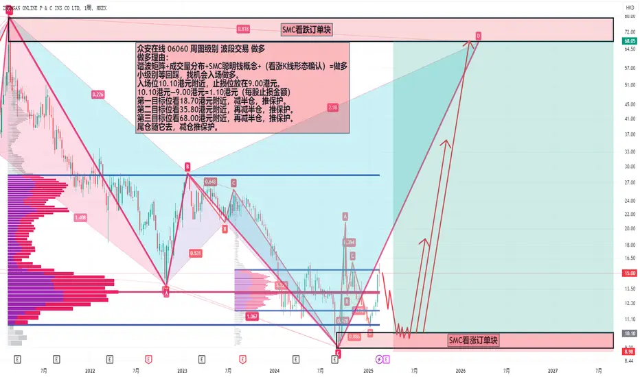 谐波矩阵+成交量分布+SMC聪明钱概念+(看涨K线形态确认)=做多