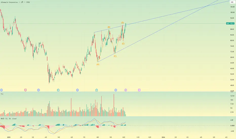 另一个锂电股,留意了很久的三角似乎终于突破了。