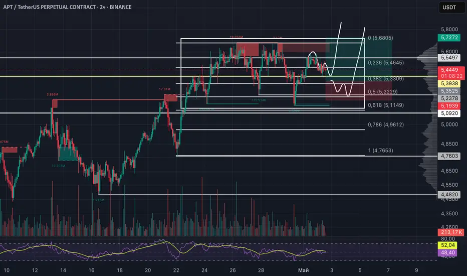 На данный момент, актив в боковике. Учитывая, что рынок продолжает движение в восходящем тренде - без локальных коррекций никуда. На откате можно рискнуть открыть лонг-позицию с целью прихода к верхней границе боковика. Стоп = ваш риск-менеджмент, как вариант можно использовать тот, который я указал в обзоре.