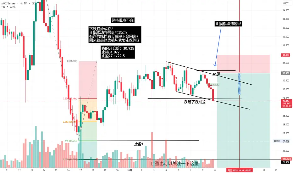 下跌趋势成立/止损移动到最近的高点/有趋势线挡着大概率不会回来/回来就是趋势破坏就要走区间了