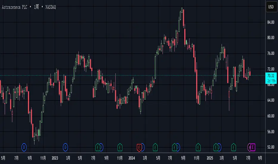 stock price for AstraZeneca as of July 15, 2025 is 70.32.
