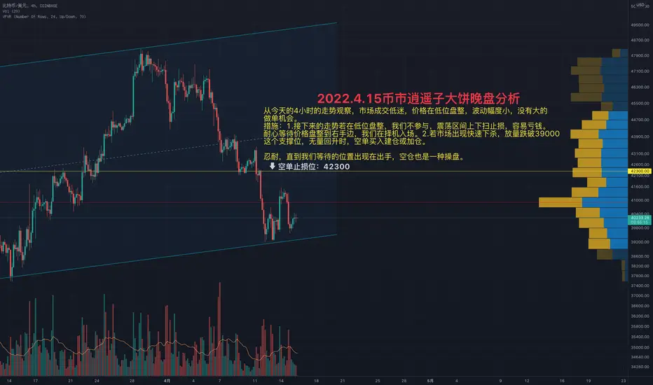 耐心等待价格盘整到右手边,我们在择机入场。2.若市场出现快速下杀,放量跌破39000