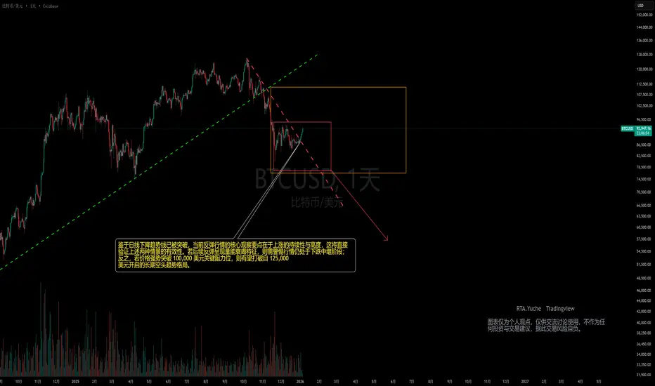 1. 底部确认型震荡:以 80,000 美元为阶段底部,震荡上沿区间界定为 110,000-120,000 美元,行情将以“时间换空间”的方式完成趋势修复;该情景的核心验证信号为价格有效站稳 110,000 美元整数关口。
