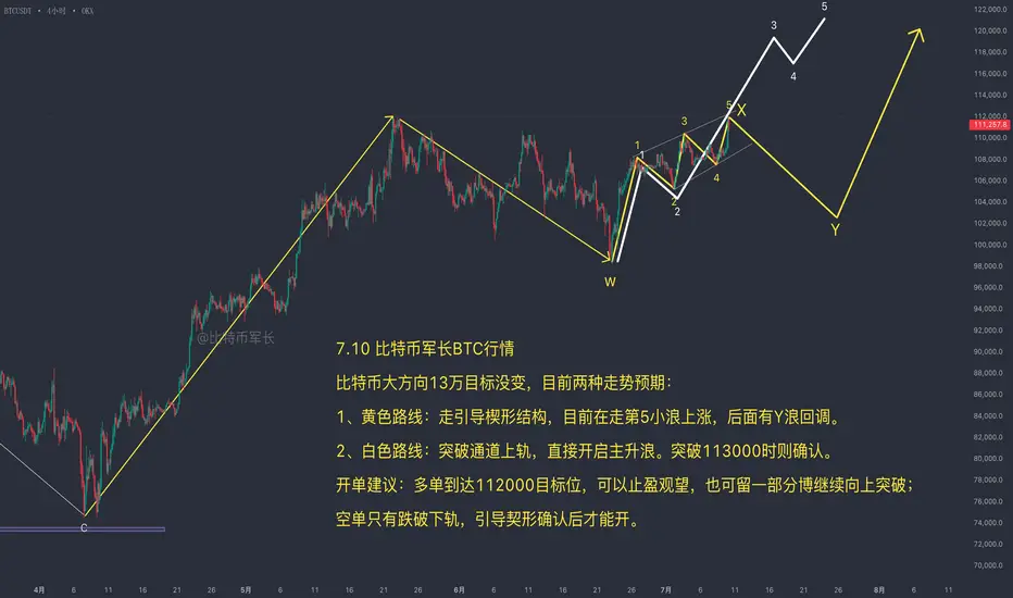 比特币大方向13万目标没变,目前两种走势预期: