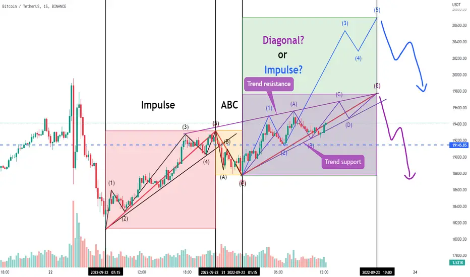 最后波动的形状预测为脉冲或结束钻石古纳,而目前的形状预测为结束钻石古纳的样子看起来更有可能。