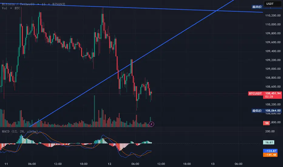 ○ 15分钟:反弹减弱,当前止盈中,关注是否出现三重支撑结构或趋势线破位再跌的机会。
