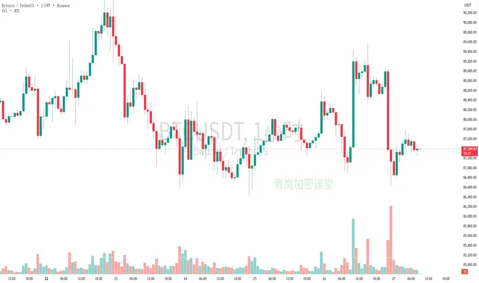 关键阻力: 87500-87700 (短期阻力),88000-88200 (前期震荡平台阻力),89000-89200 (强阻力,也是下跌前的平台)。