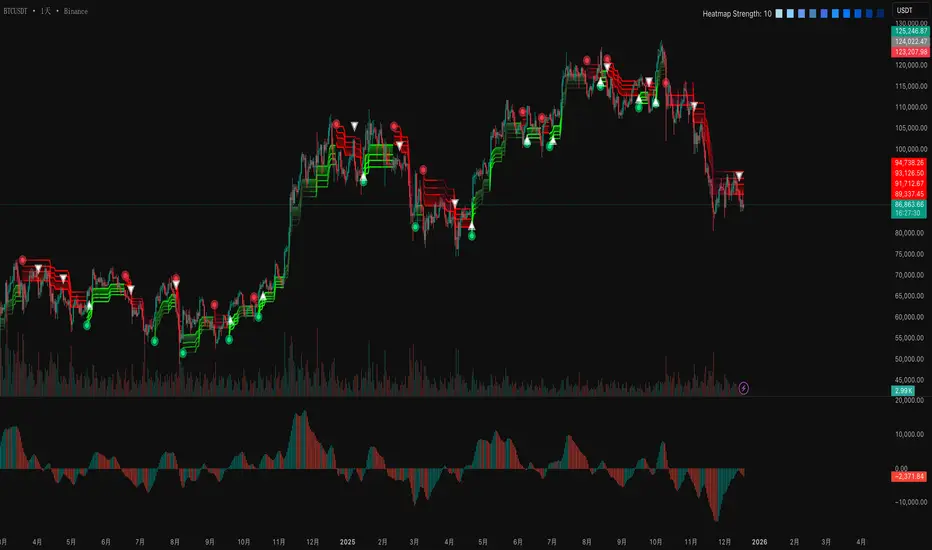 看这张日线图,BTC 现在的走势就像是在走钢丝。虽然守住了黄线的趋势支撑,但上方红区的压力肉眼可见。这种行情最考验人,很多时候我们觉得自己看准了,结果一入场就被反复“打脸”。