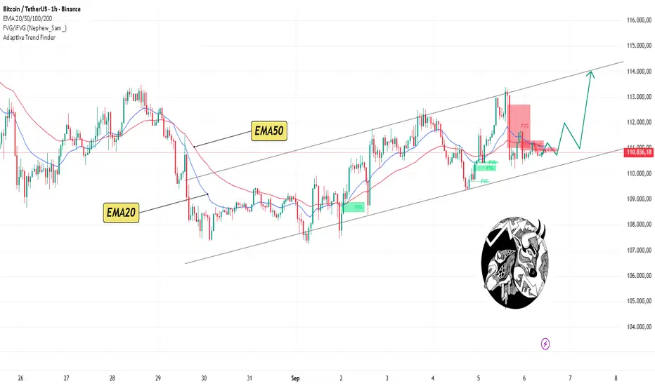BTCUSDT terus memobilisasi di saluran yang meningkat setelah mempertahankan area pendukung 110K - 111K. EMA20 dan EMA50 secara paralel, menunjukkan bahwa kekuatan pembelian masih dikendalikan. Area FVG di bawah ini juga memperkuat peran pendukung untuk peningkatan tersebut.