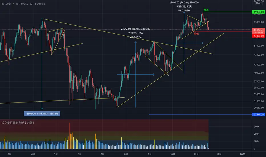 BTCUSDT波段涨幅基本满足后,在70000美金关口附近遇阻回落