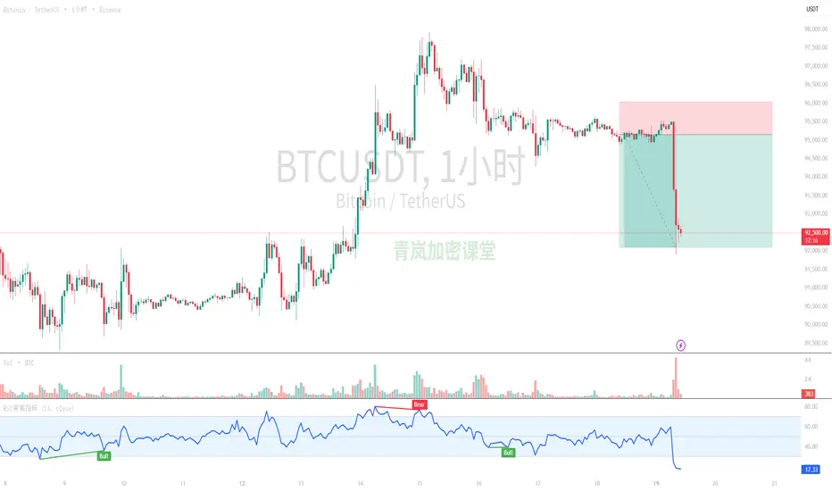 背离初现:在15分钟图上,价格创出新低(91910)时,RSI指标并未同步创新低,形成了底背离,这是短期止跌反弹的第一个技术信号。