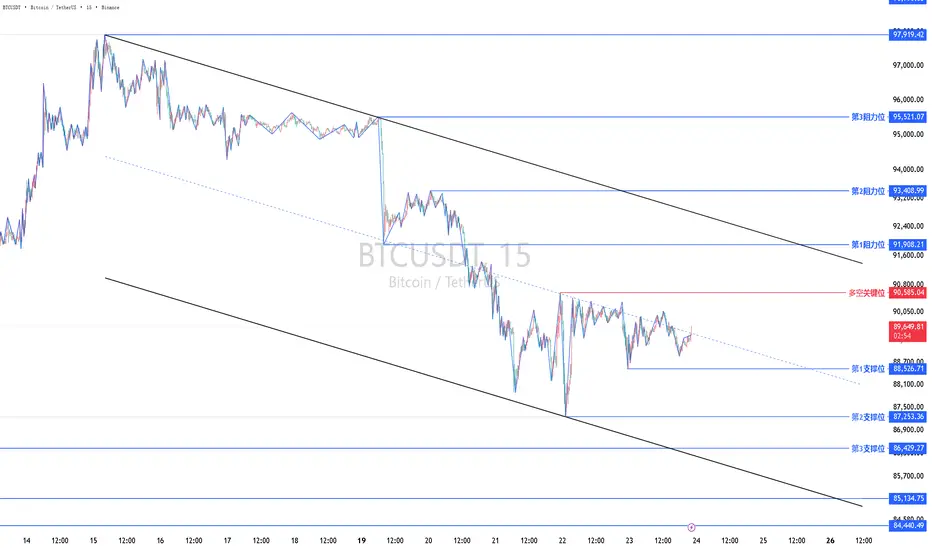 当前行情多空关键位之下偏空,以回调看空为主或背靠下跌通道高抛低吸为主,下破看空,突破看多。