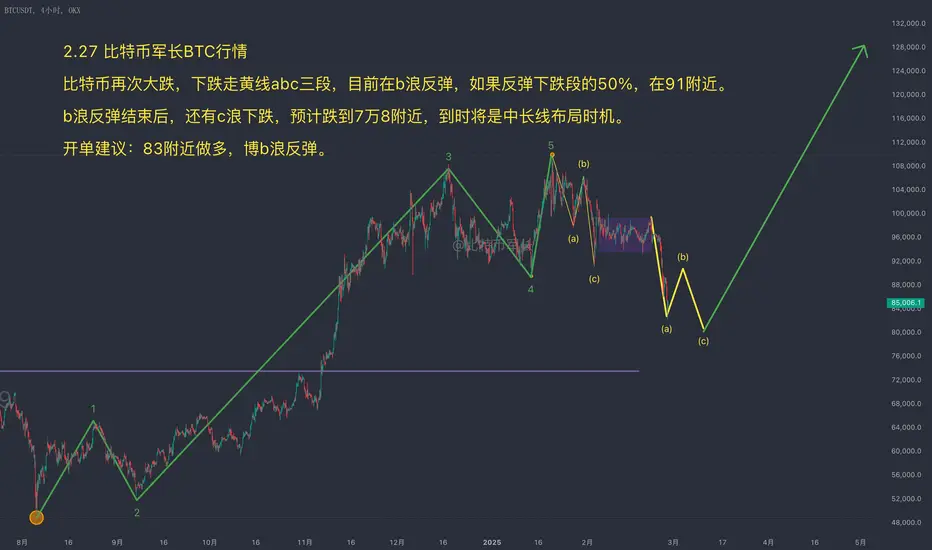 综上分析,99到82为a浪,整体结构无变化,比特多单持有,如有回踩到昨晚低点附近加一次仓。