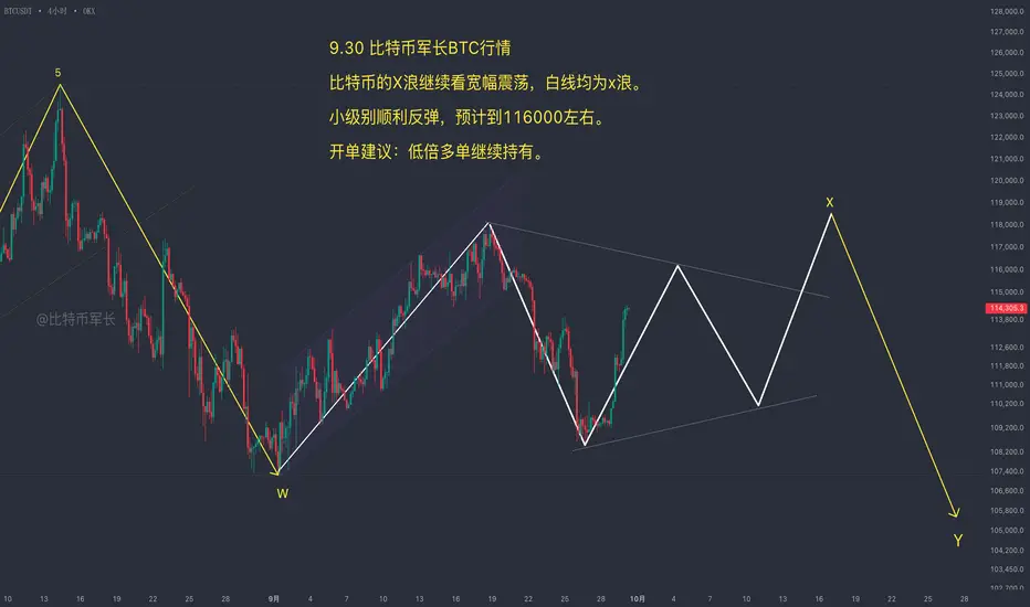 9.30 比特币价格今日行情:比特币目前在 114,000 上方,以太坊在 4220 上方。从 8 月 2 日我们就预判比特币会在 125,000 一线见顶,随后下跌,8 月 14 日确认 c 浪走完后提示 122,000 上方开空,结果行情如期下跌。8 月 30 日再次预判 W 浪完成,行情会有一笔反抽至 117,000,行情在 9 月 18 日完美到达目标。