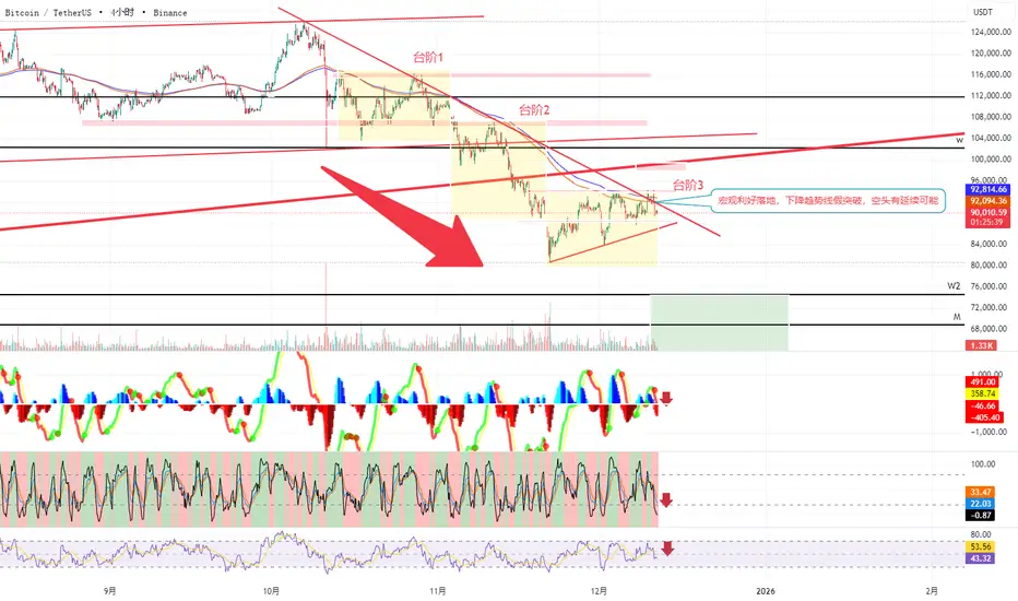 Personal Position Status: Futures: Short position at 90K with a 30% profit target, stop-loss moved down to 92K, continuing to bet on a medium- to long-term decline. No additional spot positions.