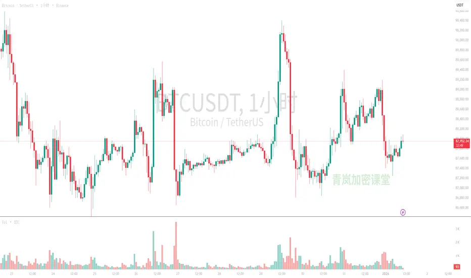 趋势:最近从89000上方经历了一次快速下跌,但在87400附近找到了支撑,目前正在尝试反弹。成交量在下跌和反弹中都有所放大。