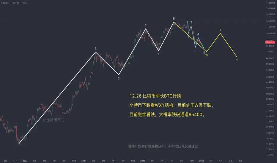 前面几天之所以一直没有给出明确方向,是因为当时结构上始终存在两种可能。到今天为止,这两种可能性已经出现明显分化,红色路线基本确认,整体方向开始清晰,行情进入下跌阶段。
