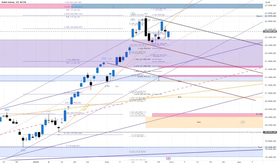 Das Tradingspektrum in der kommenden Woche wird im Rahmen von 22.852 und 22.228 erwartet (+/-). Charttechnisch und auf Basis unseres Terndfolgemodell's erwarten wir jedoch tiefere Wochenziele, welche uns bis in den Bereich ~22.090 führen können. Von da an wird es sich entscheiden, ob es noch eine Etage tiefer geht (wovon wir für den März ausgehen) oder es zu einen Rebound UPwärts oberhalb 23K kommen wird.