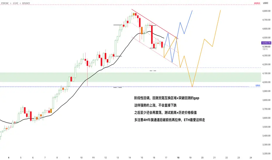 多注意4H牛旗通道后破前低再拉伸,ETH最爱这样走