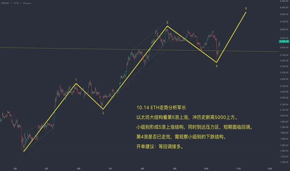 以太坊大结构看第5浪上涨,冲历史新高5000上方。