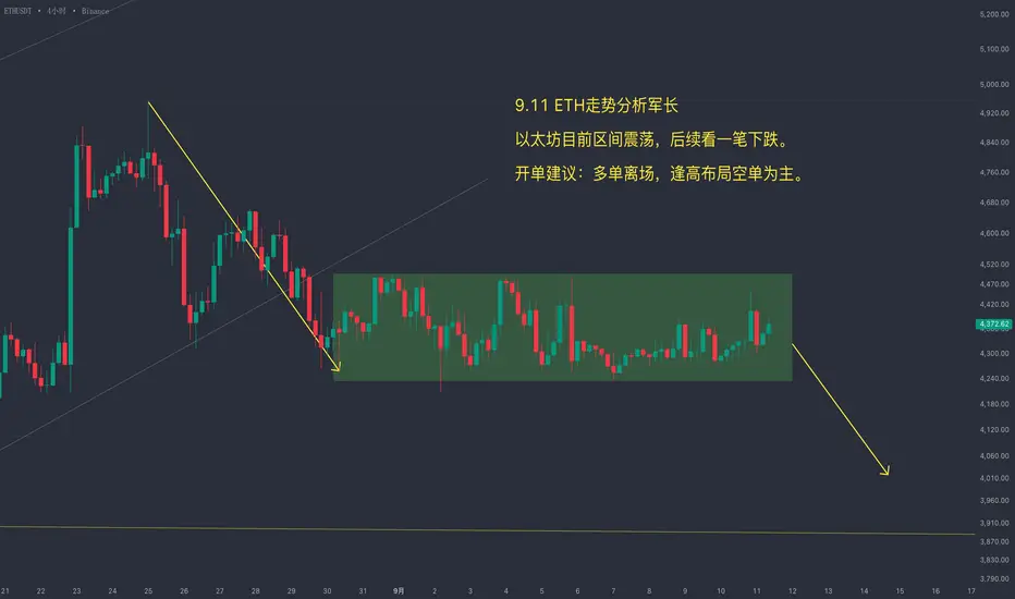 9.11以太坊价格今日行情:以太坊震荡即将结束,还差一笔c浪下跌(以太坊合约交易)