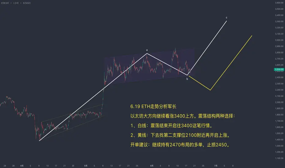 以太坊大方向继续看涨3400上方。震荡结构两种选择: