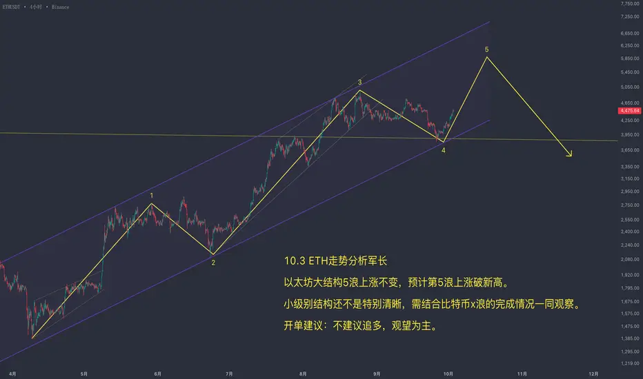 以太坊大结构5浪上涨不变,预计第5浪上涨破新高。
