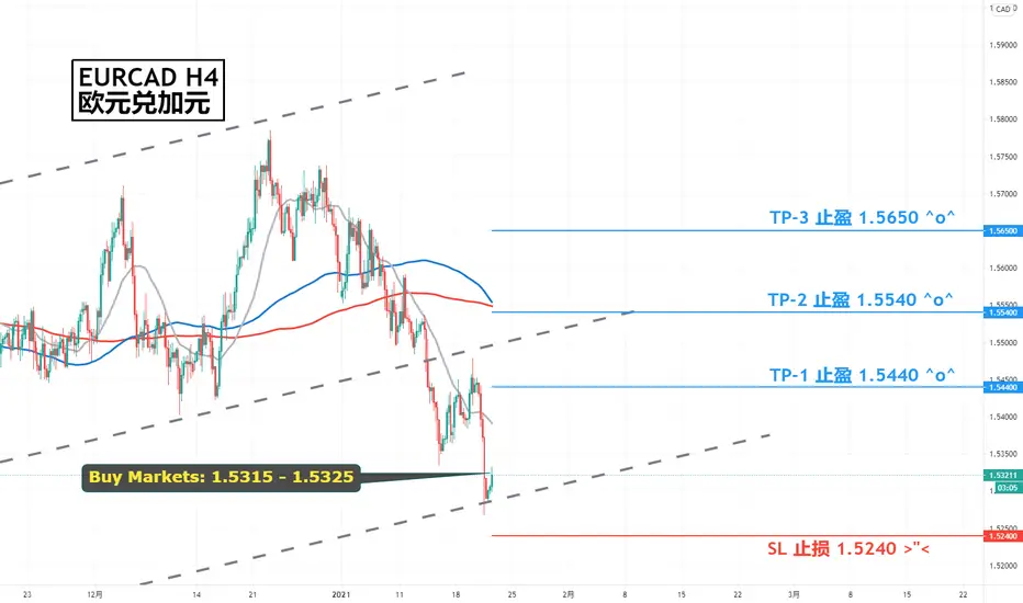 01/21 EURCAD 欧元兑加元 H4 跌深反弹,良好盈亏比,做多。