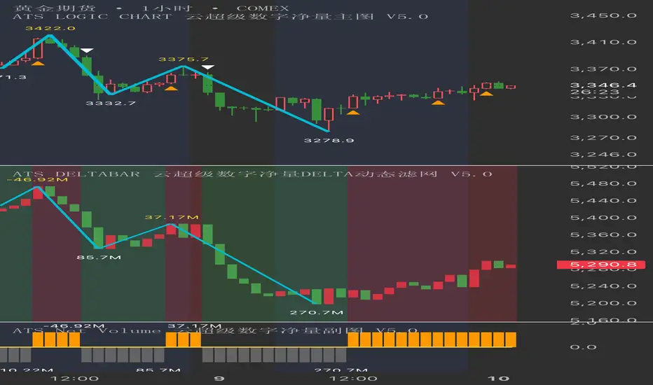 Gold futures 1-hour chart, observe that the subchart ATS NEY VOLUME is in a net inflow state.