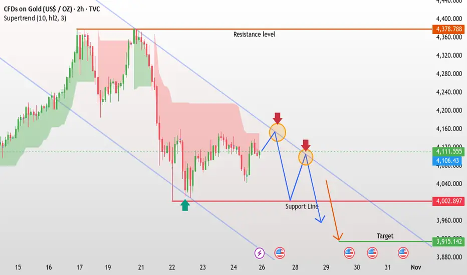 - Short-Term Trend: Bearish Correction. Gold is consolidating after a sharp drop from its recent all-time high of $4,381. The bearish momentum is dominant in the short term, driving the price lower within a corrective phase.