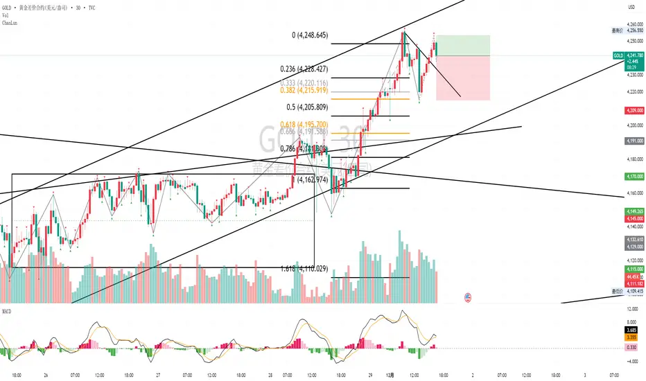 4240看空,向下看到4215,止损设在4255