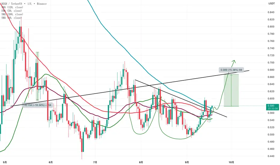high的日线突破,中线应该也有很大的拉升,随着eth的逐步走强,山寨应该还是有一波拉升,这里止损点很小,值得操作