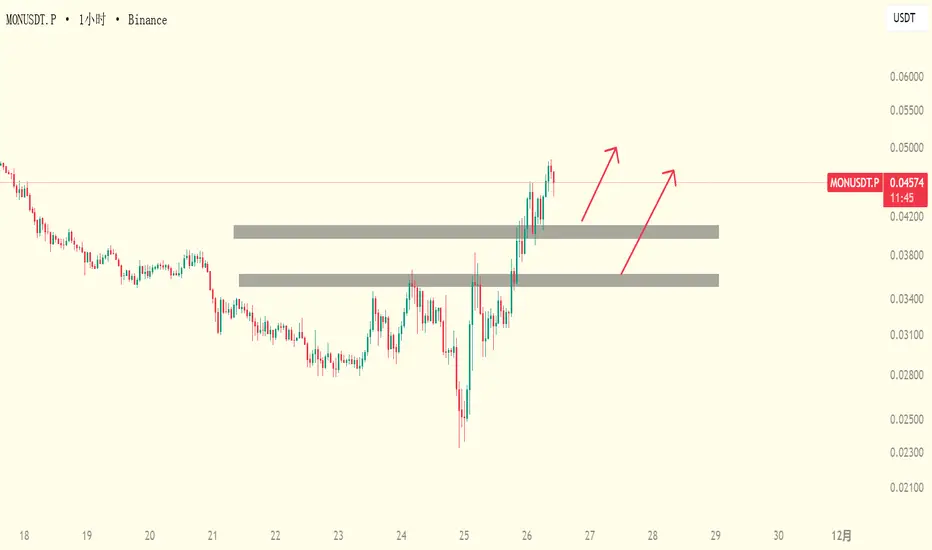 MON 热度挺高,强势突破压力区,多头结构确立。现在行情完全属于多头,趋势明显向上,只要回踩就是机会。