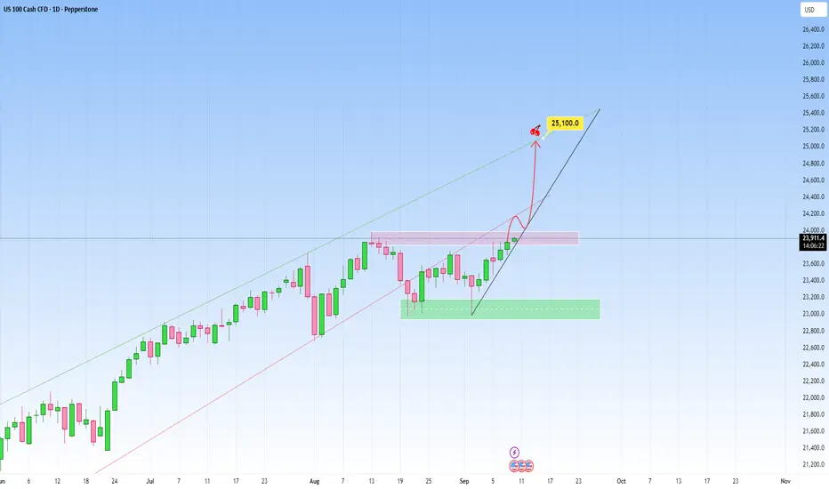 Market context on NAS100 remains bullish clearly. The most recent move saw a steady recovery, heading towards the upper boundary of the newly projected channel. And this right here is another great opportunity to get involved.
