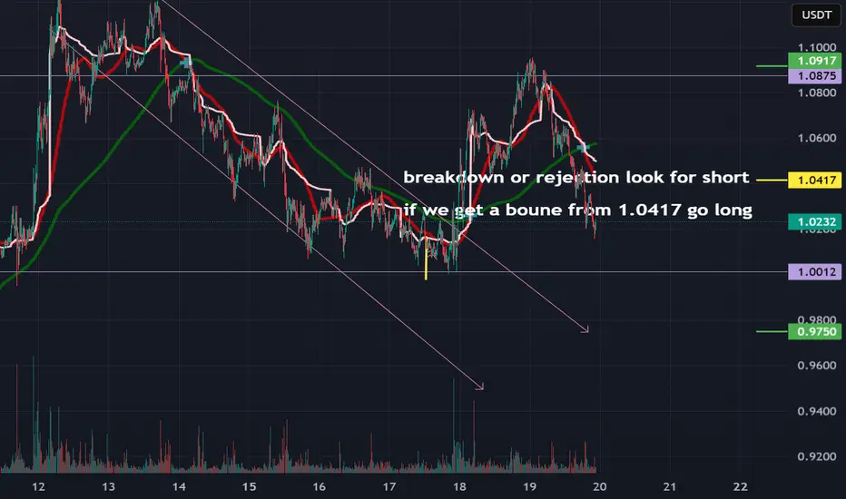look at the price 1.0417 if the price rejects go for short with targets between 0.975- 0.95