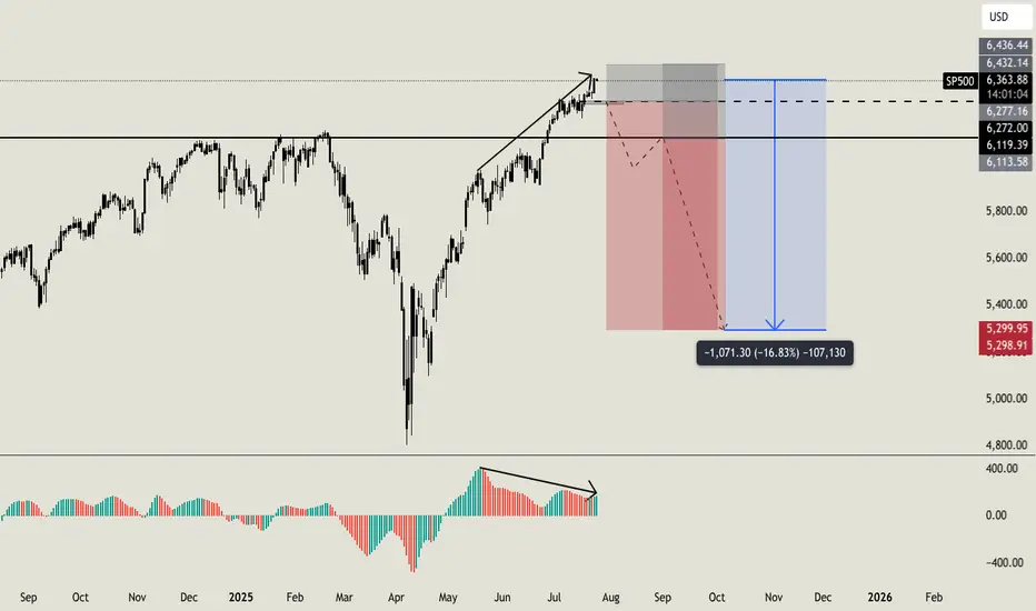 Hello all. I usually love to work analyzing volumes, times and key level, i am not used to check the standard indicators, but this time i'll made an exception. Lot of indicators (AO, MACD, RSI, OBV) are showing weakness on higher timeframe with a strong bearish divergence (like the one i am sharing now on AO). On smaller timeframe i usually ignore this signals, because they can result in a little retrace, but on higher timeframe like this one can be a strong reversal indicator. But this is not the only things that let me open this position. Going deeper into my analysis, i have a first key level at $6270. Once we will break below this level, i'll open my first sell order with a stoploss a little higher than ATH. If price will break below my second key level at $6120 i'll open my second short order. My main and final target is $5300 (around -16% from now) but i will consider to secure profits before this level. I'll update you guys, and let me know if you are agree with me or not. Cheers