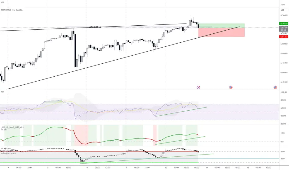 SPX500 reached a new all-time high today and has since pulled back to retest the previous ATH level. The structure remains intact, and price is shaping up into a potential bullish flag, signaling continuation higher.