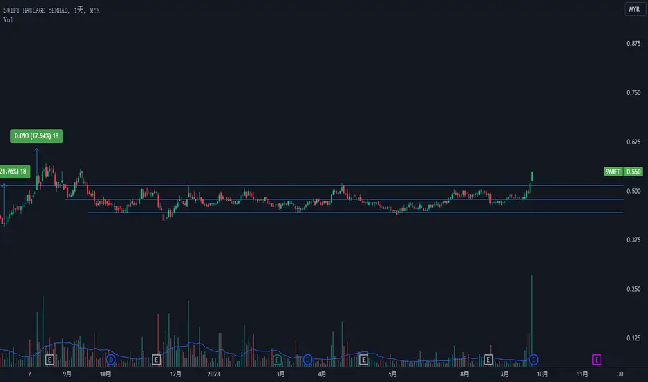 一年的横盘跳空突破压力位,回调站稳0.515,可以考虑入场做多