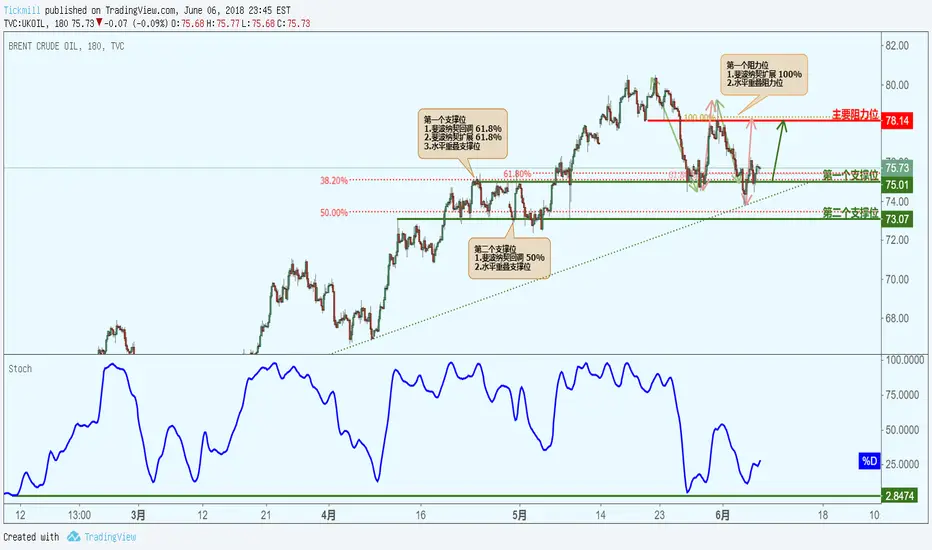 UKOIL 在第一个支撑位75.01(斐波那契回调61.8%,斐波那契扩展61.8%,水平重叠支撑位)遇到反弹有可能将价格推至上涨到主要阻力位78.14(斐波那契扩展100%,水平重叠阻力位)附近。