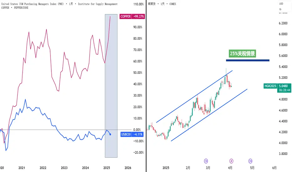 2025年至今,美国铜价上涨25%,目前报价5.056美元/磅。铜成为了大宗商品市场耀眼的明星,甚至2025年至今(本文撰写于4月初)的涨幅超过了黄金的19.6%涨幅。