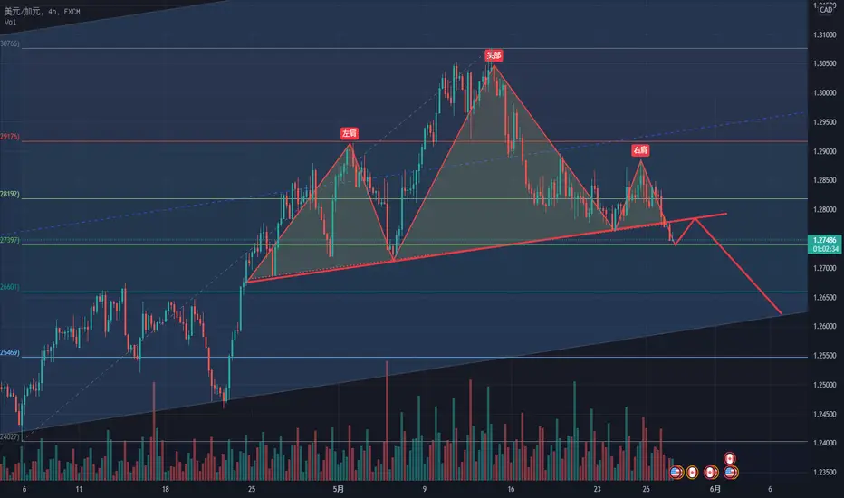 4H级别形成头肩顶反转形态,在大级别上涨通道中料继续回落,可在价格反弹至1.2785介入空单,下看1.2660至1.2560区间。