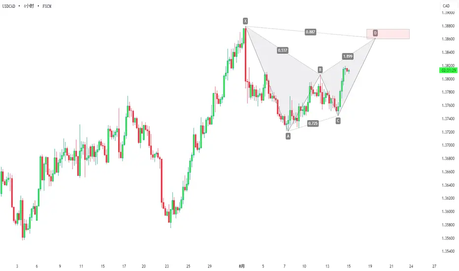 USDCAD:美加潜在蝙蝠形态,等待形态完成
