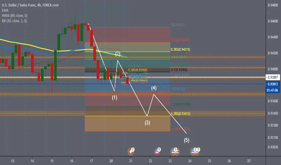 The 1st impulsive move creating the first leg of the elliot wave was created at .94500 to .93800. It then retraced to the .5 Fib level at .94100 rejecting and continuing bearish momentum. I believe third leg wont be completed until .93500 before leg 4 retracement.
