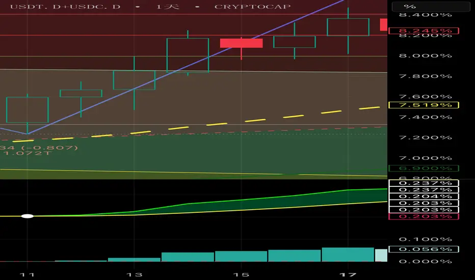 USDC.D+USDT.D 即将收出两年来的最高周线K线。