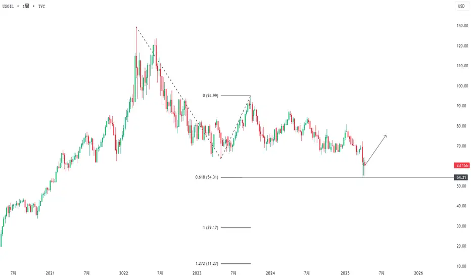 USOIL:原油周线收长下影Pinbar,后市看涨