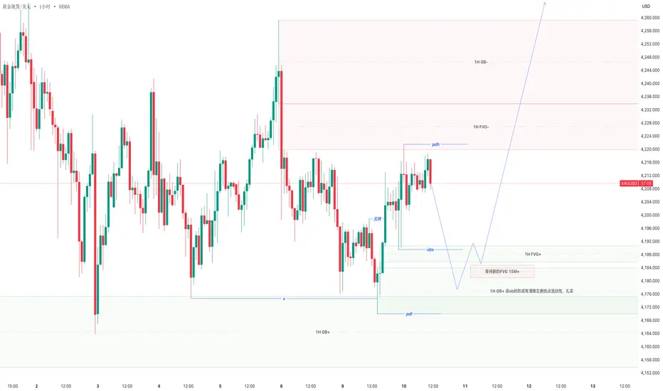 9号欧盘向下清除左侧流动性后刹车了,随后反转了行情,并创造了新的1H级别看涨OB+FVG。这属于一个新的叠加看涨阵列。因此今天我需要耐心等待行情来到这个1H OB,随后观察价格是否会被强烈拒绝。