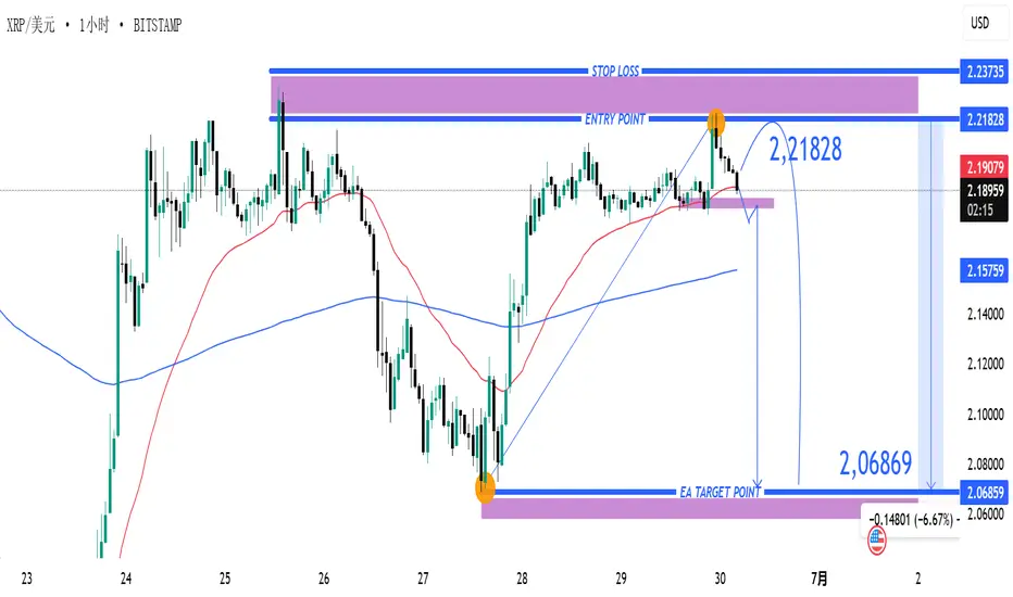 XRP/USD——强阻力回落,空头目标位于 2.06869 🎯